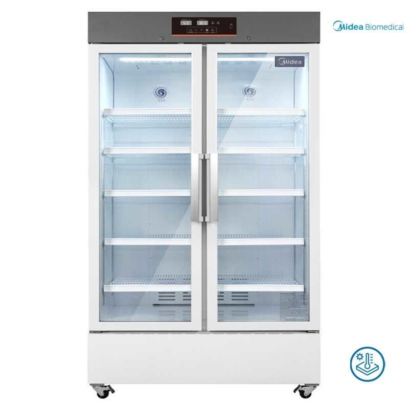 ตู้เย็นร้านขายยา Midea เหมาะสําหรับเก็บวัคซีน ยาและผลิตภัณฑ์ห้องปฏิบัติการ ในอุณหภูมิ 2oC ถึง 8oC ในร้านขายยา โรงงานผลิตยา โรงพยาบาล CDC คลินิกห้องปฏิบัติการ.